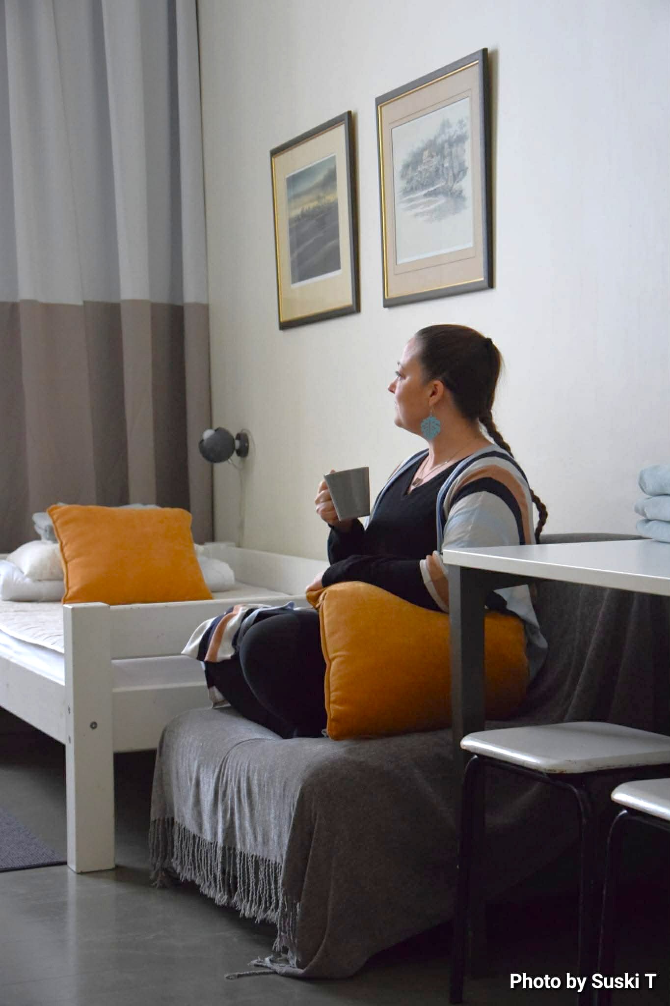 Vårt vandrarhem har 39 bäddar fördelade på åtta rum på två våningar, två sällskapsrum och ett gästkök för lättare måltider. Boka ett mysigt privat rum för en till sju personer eller en säng i sovsal. Alla våra sängar är utrustade med högkvalitativa, flerskiktade skummadrasser med rätt fasthet för att garantera en god natts sömn. Extrasängar finns vid behov (€ 15 per säng). Gratis Wi-Fi, en gästdator, TV, böcker samt Fair Trade-kaffe och -te finns för alla våra gäster. Våra duschar har ekologiska schampon och balsam som är tillverkade i Finland. Vi använder inte uteskor inomhus. Vi rekommenderar att du tar med inneskor eller yllesockor :).